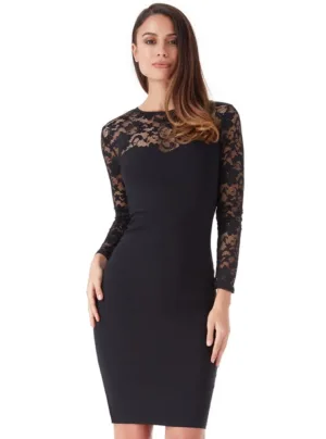Utrolig smuk og elegant festkjole med lange ærmer i navy farve.