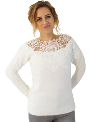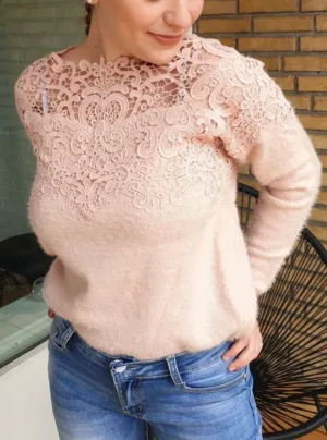 Blusen er med de flotteste blonde detaljer på overdelen.